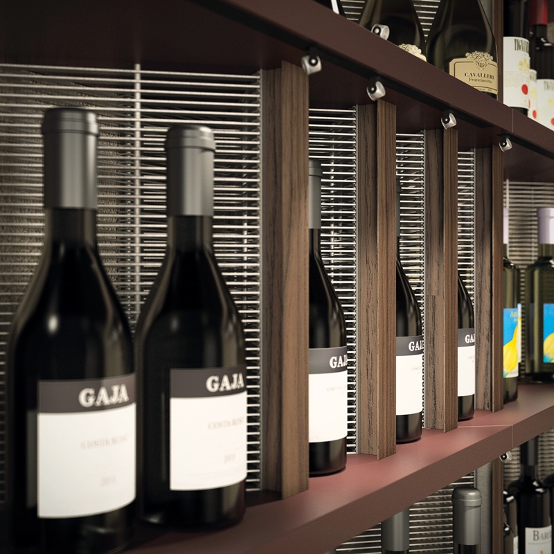 Ogni scelta progettuale segue le specifiche esigenze comunicative della singola cantina, o lo stile del singolo spazio, con lo scopo di creare un mobile portabottiglie capace di valorizzare l’esclusività del prodotto.