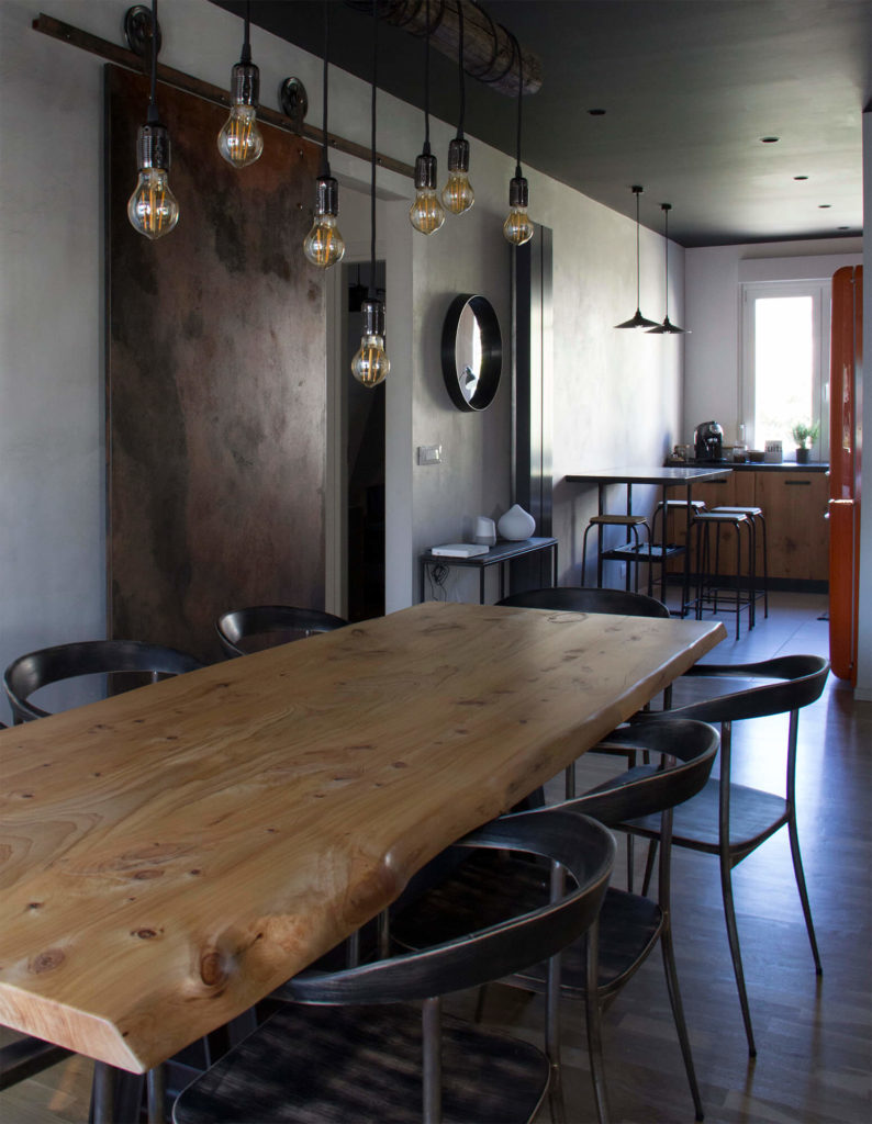 Abbiamo interpretato la richiesta del committente sviluppando un progetto di ristrutturazione e di interni in stile industriale, studiato sulle abitudini domestiche del cliente e basato sulla volontà di valorizzare e connettere visivamente tra loro gli ambienti.